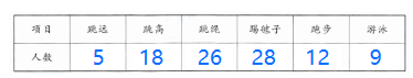 |项目|跳远|跳高|跳绳|踢毽子|跑步|游泳|