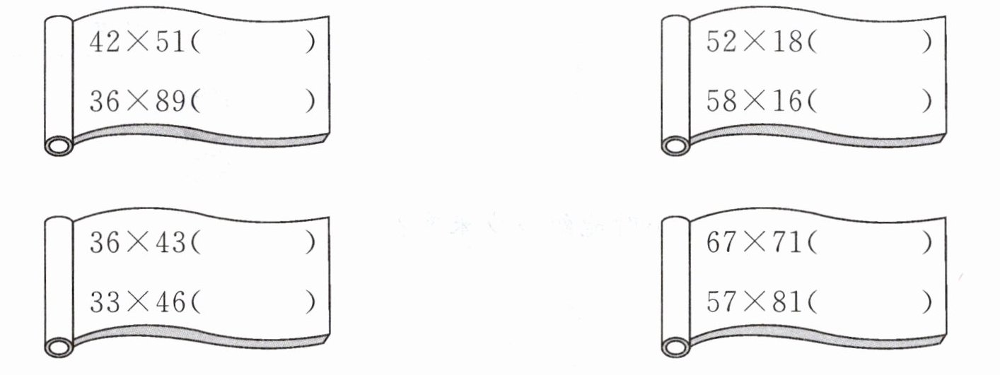 1. 计算 $32×12$ 时,可以先算$( )×( )=( )$,再算 $32×( )=( )$,最后把$( )$和$( )$相加,得数是$( )$。
