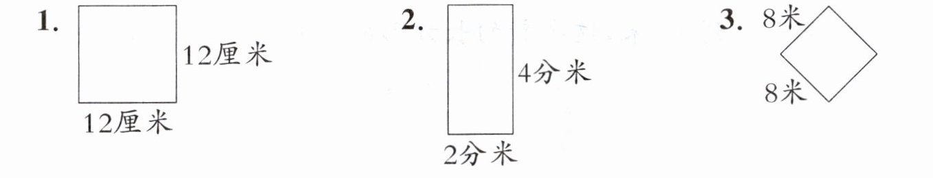 3. 长方形的面积$=$( ),正方形的面积$=$( )。