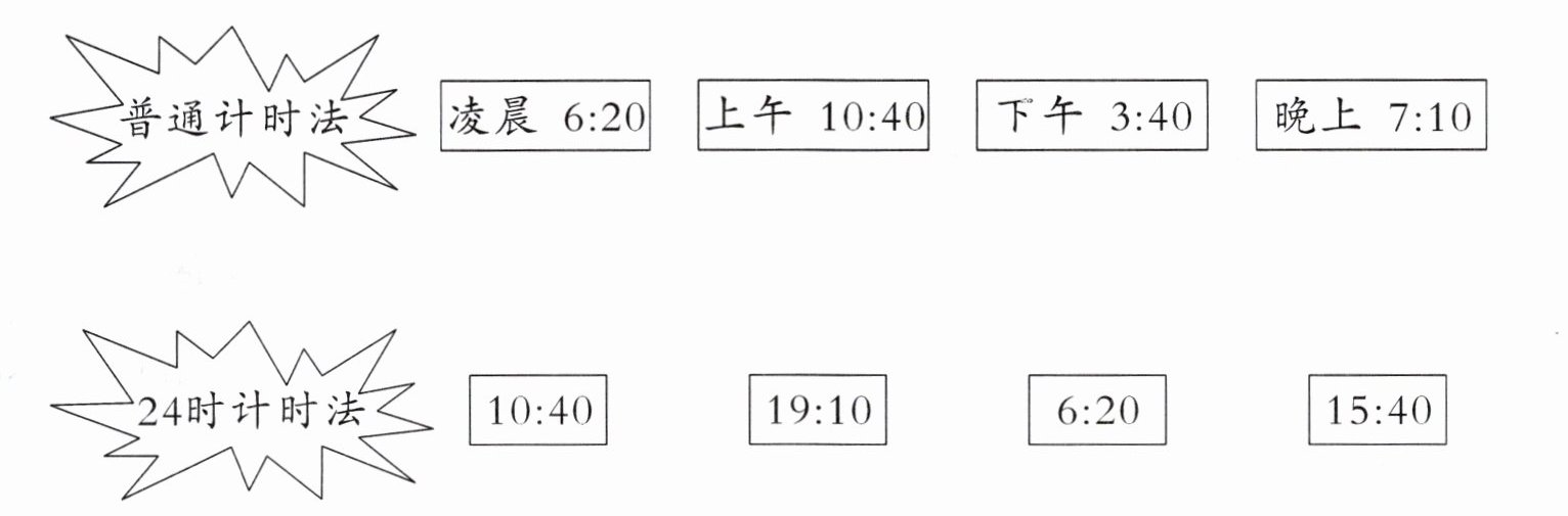 凌晨$6:20$连$6:20$;上午$10:40$连$10:40$;下午$3:40$连$15:40$;晚上$7:10$连$19:10$。