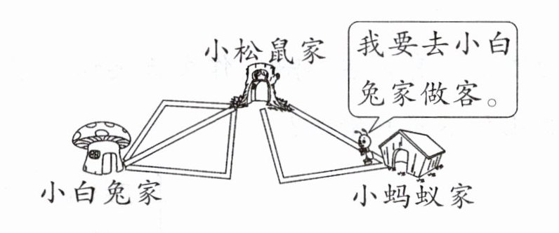 2. 小蚂蚁经过小松鼠家到小白兔家一共有几条路可以走?