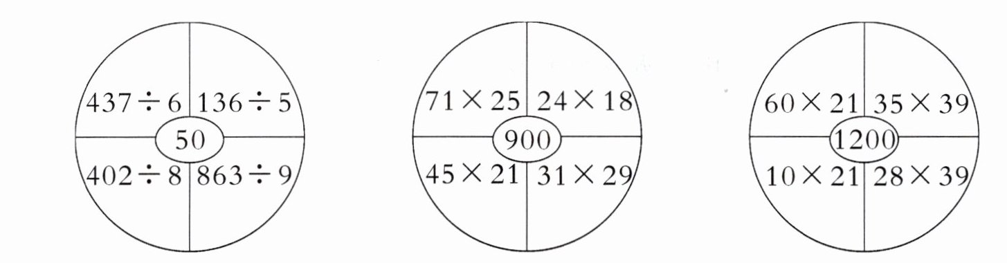 三、估一估哪两个数的积或商最接近圈中的数,在它上面画“√”。