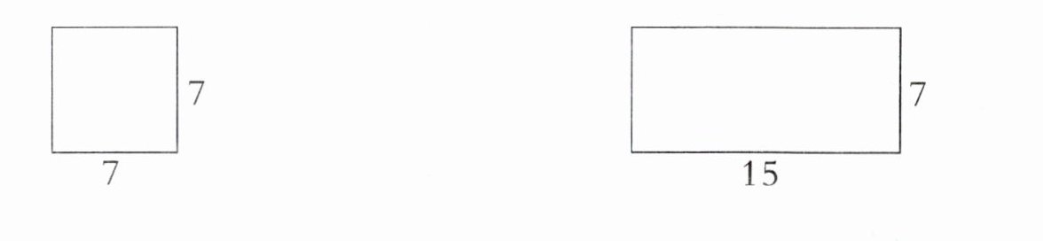 - 长方形面积:$15\times7=105$(平方厘米)