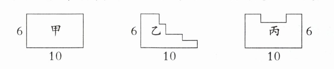 5. 关于甲、乙、丙三张图的周长、面积,下列说法正确的是()。