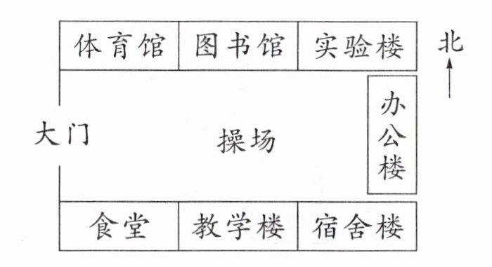 2. 体育馆在校园的( )角,宿舍楼在校园的( )角。