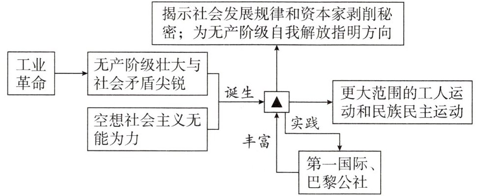 10. C 【解题思路】根据材料可知,马克思主义的诞生吸收了人类优秀思想成果,反映了工业革命引起的社会变化,总结了工人运动的经验,是理论与实践的产物。故选 C。