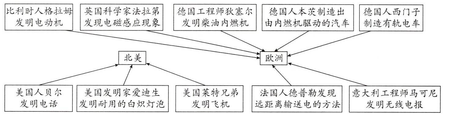 第二次工业革命部分成果示意图