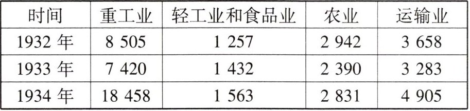 5. 跨学科·数学下面是1932—1934年苏联部分领域的固定投资表(单位:百万卢布)。据此可知,苏联(