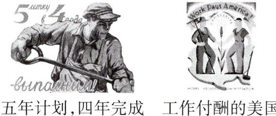2. (2024 深圳模拟)下面两幅宣传画分别反映的是 20 世纪 30 年代苏联和美国实施的两项经济措施。这两项措施的实施都 (