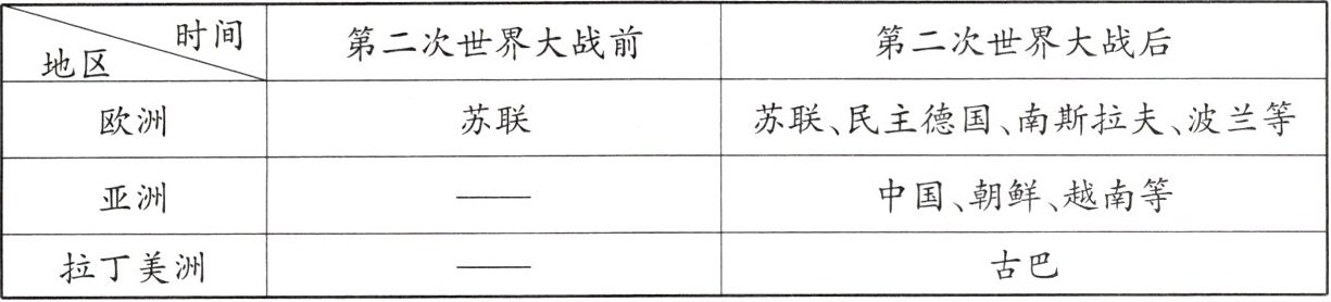(1)根据材料一,指出第二次世界大战前后社会主义国家数量变化的意义。(2分)