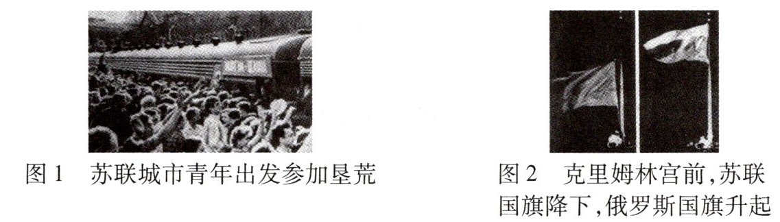 (2)【示例】选择图 1。介绍:图 1 反映的史实发生在赫鲁晓夫执政时期。1953 年,赫鲁晓夫上台执政,在经济上进行了一些改革,如发动垦荒运动。但赫鲁晓夫改革没有从根本上解决苏联模式高度集中的经济体制弊端,并且存在严重偏差。(4 分)