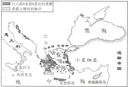 7. (教材素材)如右图所示,公元前 8 至前 6 世纪,古希腊人进行了大范围的殖民活动。据此可知,古希腊人 (