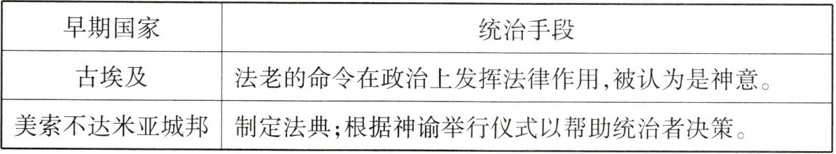 3. (2024 广东)下面是世界古代史上两个早期文明的统治手段简况。据此可知,两者的共性是 (