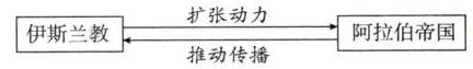 (2)根据材料二并结合所学知识,以示意图的形式呈现伊斯兰教和阿拉伯帝国的关系。(4分)