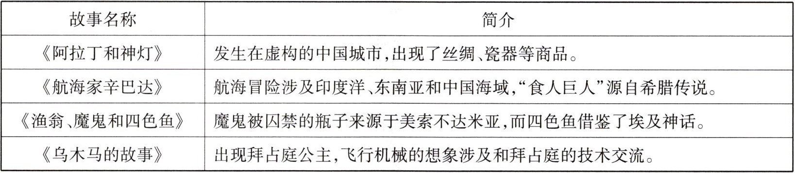 12. 下面是《一千零一夜》中部分故事的简介。这说明阿拉伯 (