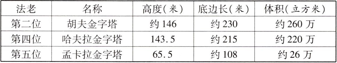 )古埃及第四王朝三位法老的金字塔统计表