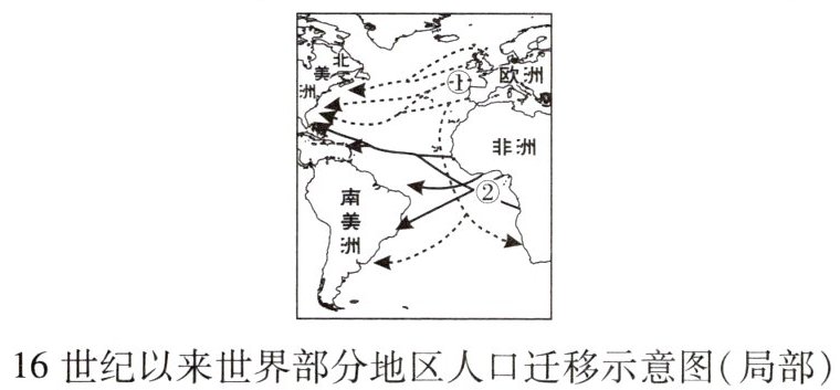 (2)方向①:自愿性移民。(1 分)方向②:被迫性移民。(1 分)