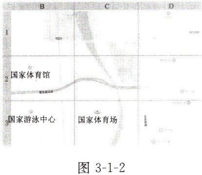 (2)图3-1-2是北京奥林匹克公园简图的一部分,如何向同伴介绍“国家体育馆”所在的区域?