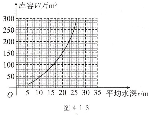 例 如图4-1-3是某水库的库容曲线图,其中x(单位:m)表示水库的平均水深,V(单位:万m³)表示水库的库容.根据图象回答下面的问题: