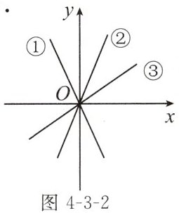 例3 如图4-3-2,三个正比例函数的图象分别对应关系式:① $ y = ax $,② $ y = bx $,③ $ y = cx $,将 $ a $,$ b $,$ c $ 从小到大排列,并用“<”连接为____