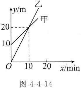 2. 图4-4-14是甲、乙两个探测气球所在位置的海拔y(单位:m)关于上升时间x(单位:min)的函数图象。根据图象解决下列问题: