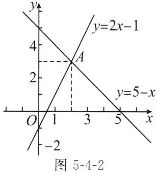 如图5-4-2,在同一平面直角坐标系中分别画出一次函数$y=5-x$和$y=2x-1$的图象,这两个图象有交点吗?