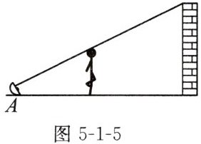 例3 如图5-1-5,在一间黑屋子的地面A处有一盏探照灯,当人从灯的右侧向墙运动时,他在墙上的影子的大小变化情况是 (