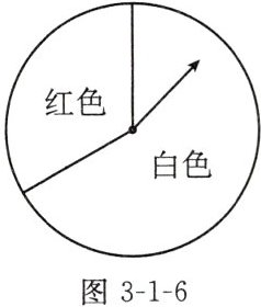 例2 如图3-1-6,转盘的红色区域所对的扇形圆心角的度数为$120^{\circ }$,让转盘自由转动2次,求指针1次落在红色区域,1次落在白色区域的概率.