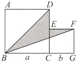 (2)根据题意,得$S_{阴影}=S_{两正方形之和}-S_{\triangle AED}-S_{\triangle BFG}=(a^{2}+b^{2})-\frac{1}{2}a^{2}-\frac{1}{2}(a + b)\cdot b$