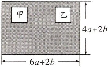 8. 某公司门前一块长为$(6a + 2b)m$,宽为$(4a + 2b)m$的长方形空地要铺设地砖,如图,空白的甲、乙两正方形区域是建筑物,不需要铺地砖。两正方形区域的边长均为$(a + b)m$。