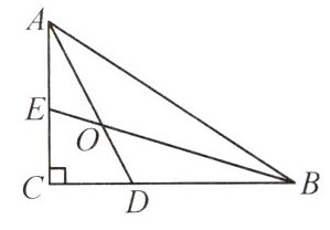 【例5】如图,在$Rt\triangle ABC$中,$\angle C = 90^{\circ}$,$\triangle ABC$的角平分线$AD$,$BE$相交于点$O$,求$\angle AOB$的度数.