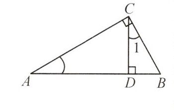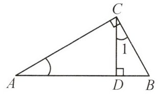 【变式2】(人教教材P14T1改编)如图,$\angle ACB = 90^{\circ}$,$CD \perp AB$,垂足为$D$,则$\angle 1$与$\angle A$有什么关系?为什么?