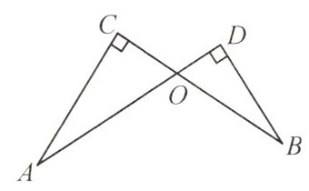 【例2】(人教教材P14例3改编)如图,$AD$和$BC$相交于点$O$,且$\angle C = \angle D = 90^{\circ}$. 求证:$\angle A = \angle B$.