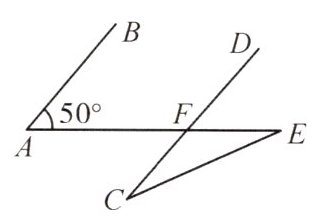 【变式2】(人教教材P17T6改编)如图,$AB// CD$,$\angle A=50^{\circ}$,$\angle C=\angle E$.求$\angle C$的度数.