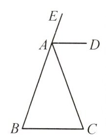 【变式3】如图,在$\triangle ABC$中,$\angle B=\angle C$,$AD$平分外角$\angle EAC$.求证:$AD// BC$.