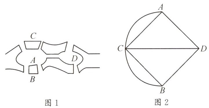 4. 数学史上著名的“哥尼斯堡七桥问题(图1)”的解决开创了数学的一个新分支:图论。图论是一门研究点、线、面(面是由线所围成的区域,区域之间不重合)这三个构成所有几何图形的基本要素的学科。在十八世纪初,瑞士数学家欧拉通过把图1转化为图2,找出了几何图形中点、线、面之间的数量关系,人称欧拉公式,该公式深刻揭示了几何图形的本质属性。