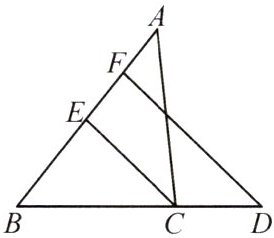 1. 如图,在$\triangle ABC$中,$\angle A=46^{\circ}$,$CE$是$\angle ACB$的平分线,点$B$,$C$,$D$在同一条直线上,$FD// EC$,$\angle D=42^{\circ}$,求$\angle B$的度数.