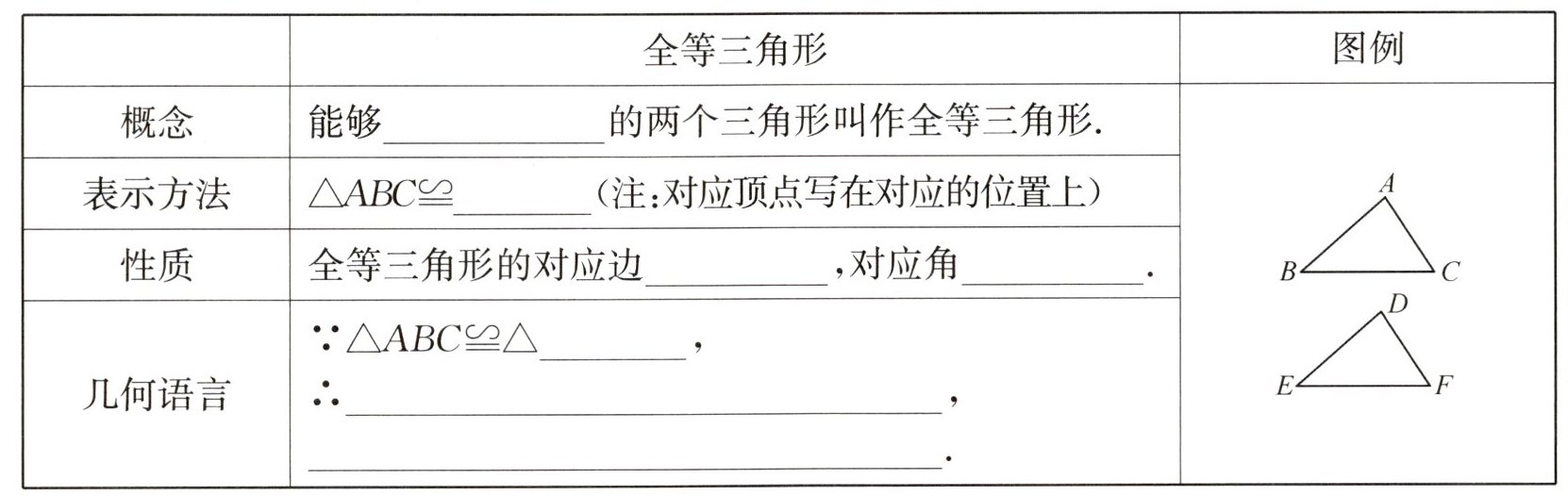 2. 全等三角形的概念及其性质.