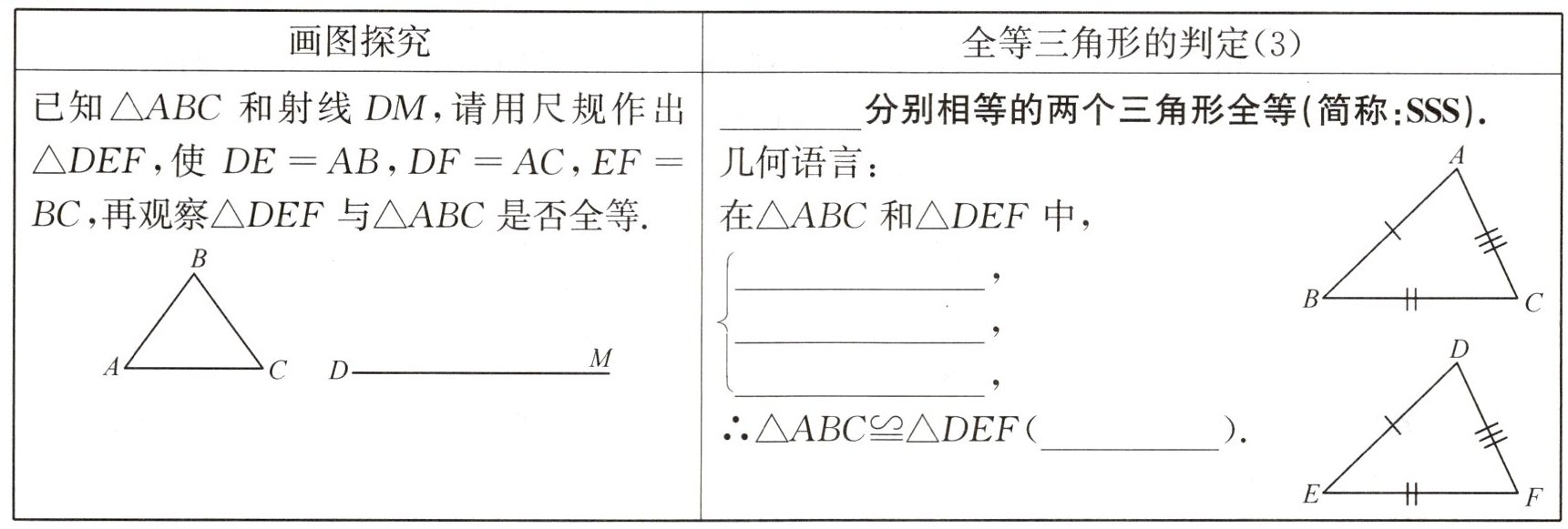 三边 $AB = DE$ $BC = EF$ $AC = DF$