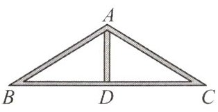 【例1】(人教教材P37例3)在如图所示的三角形钢架中,$AB = AC$,$AD$是连接点$A$与$BC$中点$D$的支架。求证:$AD\perp BC$。