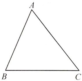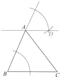 2. (人教教材P41T1)如图,用直尺和圆规作一条直线,使这条直线过$△ABC$的顶点$A$,并且与边$BC$平行。