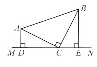 【例2】如图,在△ABC中,∠ACB=90°,AC=BC,直线MN经过点C,且AD⊥MN于点D,BE⊥MN于点E。求证: