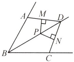4. 如图,$BD$是$∠ABC$的平分线,$AB=BC$,点$P$在$BD$上,$PM⊥AD$,$PN⊥CD$,垂足分别为$M$,$N$。求证:$PM=PN$。