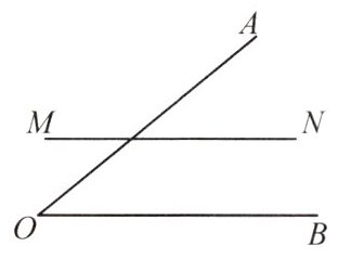 【例3】(人教教材P50T1)如图,在直线$MN$上求作一点$P$,使点$P$在$∠AOB$的内部,且点$P$到射线$OA$和$OB$的距离相等。