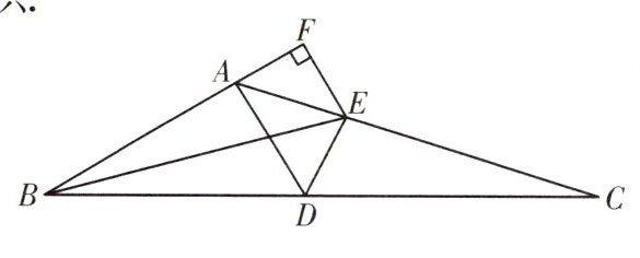 6. (中考热点·模型解题)如图,在$△ABC$中,点D在边BC上,$∠BAD=100^{\circ }$,$∠ABC$的平分线交AC于点E,过点E作$EF⊥AB$,交AB的延长线于点F,且$∠AEF=50^{\circ }$,连接DE。