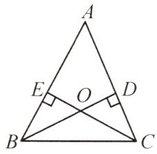 5. 如图,锐角三角形ABC的两条高BD,CE相交于点O,且$OB=OC$。