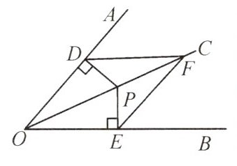 【变式3(2)】(人教教材P53T6)如图,$OC$是$\angle AOB$的平分线,$P$是$OC$上的一点,$PD \perp OA$,$PE \perp OB$,垂足分别为$D$,$E$。$F$是$OC$上的另一点,连接$DF$,$EF$。求证:$DF = EF$。