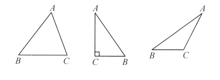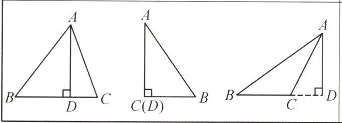 结论:任意三角形都有____条高,且三条高所在的直线相交于同一点。锐角三角形三条高的交点在它的____部;直角三角形的三条高的交点在它的____上,钝角三角形的三条高的交点在它的____部。