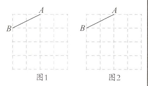 (1)在图1中画一个以线段AB为边的轴对称图形$\triangle ABC$,使其面积为2;