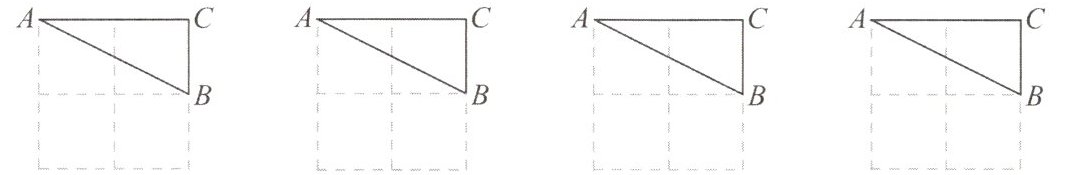 6. 如图,在$2×2$的正方形网格中,每个小正方形的边长均为1. 请分别在四个图中各画出一个与$\triangle ABC$成轴对称、顶点在格点上,且位置不同的三角形.